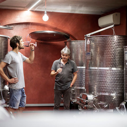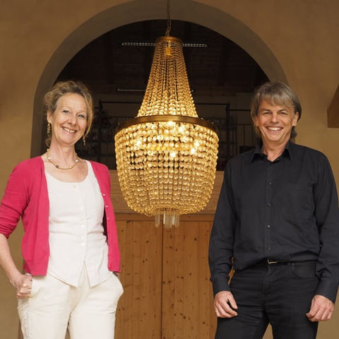 At the age of 50, Lorenz San Nicolò, geologist and entrepreneur, chucked his geologist's hammer and his company in Milan in and plunged into a wine adventure - as an autodidact, supported by a few congenial winegrowers and encouraged by his wife Elisabeth ("Sissi") and his six daughters. The Cora Hof is a small winery, located directly on the South Tyrolean Wine Road (strade del vino), near the wine village of Sankt Pauls. The warmest vineyard around the farm is filled with Merlot - the Goldmuskateller (Mosacto Giallo) grows on a slightly cooler part. In 2019 the winery was enlarged and planted with Cabernet Franc, Sauvignon Blank, and Petit Manseng. The wine cellar is equipped with the most modern cellar technology which enables a clean and gentle processing of the valuable grapes. It was designed in a modern yet traditional style by architect Ute Oberrauch. The sensitive combination of traditional and modern, rural and urban elements have created a central location for the entire family. Under a splendid Art Nouveau chandelier from the estate of a former luxury hotel in Merano, tractors and machines are stored, a workshop is operated and parties, balls and weddings of the six daughters are celebrated. The chandelier is symbolizes the winemaker families' fondness of elegance, festivity and joy of the buoyancy of life.